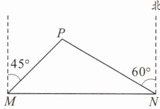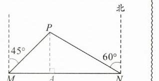4. 我市准备在相距2千米的M,N两工厂间修一条笔直的公路,但在M地北偏东45°方向、N地北偏西60°方向的P处,有一个半径为0.6千米的住宅小区(如图),问修筑公路时,这个小区是否有居民需要搬迁?(参考数据:$\sqrt{2} \approx 1.41$,$\sqrt{3} \approx 1.73$)