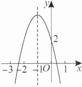 5. (2024·顺德区三模改编)已知二次函数$y=ax^{2}+bx+c(a≠0)$的部分图象如图所示,图象经过点$(0,2)$,其对称轴为直线$x=-1$.下列结论:①$a<0$;②若点$(-4.5,y_{1})$,$(3,y_{2})$均在该二次函数图象上,则$y_{1}>y_{2}$;③关于$x$的一元二次方程$ax^{2}+bx+c+1=0$没有实数根;④满足$ax^{2}+bx+c>2$的$x$的取值范围为$-2<x<0$.其中正确的结论有