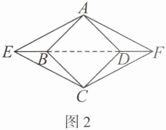 (2)【实际应用】应用上述定理解决实际问题:周末,小辰和妈妈买回来一盏简单而精致的吊灯,其截面如图 2 所示,四边形 ABCD 是一个菱形内框架,四边形 AECF 是其外部框架,且点 E,B,D,F 在同一直线上,BE = DF。