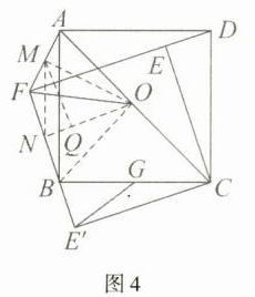 (3)解:如图4,取$AF$的中点$M$,取$BF$的中点$N$,连接$OM$,$ON$,$OB$,$MN$,过点$M$作$MQ\perp ON$于点$Q$,