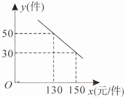 把 $ (130, 50) $,$ (150, 30) $ 代入,得 $ \begin{cases} 130k + b = 50 \\ 150k + b = 30 \end{cases} $,解得 $ \begin{cases} k = -1 \\ b = 180 \end{cases} $。