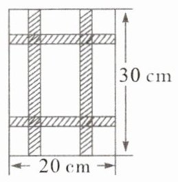 14. 如图,要设计一幅宽 20 cm、长 30 cm 的矩形图案,其中有两横两竖的彩条,横、竖彩条的宽度比为 2:3. 如果要使所有彩条所占面积为原矩形图案面积的三分之一,应如何设计每个彩条的宽度?