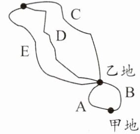 8. 随着深圳交通的快速发展,城乡居民出行更加便捷,如图,从甲地到乙地有乡村公路A和省级公路B两条路线;从乙地到深圳宝安国际机场有省级公路C、高速公路D和城市高架E三条路线.小华驾车从甲地途经乙地到深圳宝安国际机场接人.(不考虑其他因素)