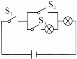 2. [跨学科融合]如图所示的电路连接完好,且各元件工作正常.若随机闭合开关$S_{1}$、$S_{2}$、$S_{3}$中的两个,能让两个小灯泡同时发光的概率是(