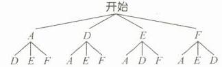 共有 $ 12 $ 种等可能结果, 以点 $ A, E, B, C $ 为顶点及以 $ D, F, B, C $ 为顶点所画的四边形是平行四边形, 共 $ 4 $ 种, $ \therefore $ 所画的四边形是平行四边形的概率 $ P = \frac{4}{12} = \frac{1}{3} $.