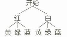 所有可能出现的结果: (红, 黄), (红, 绿), (红, 蓝), (白, 黄), (白, 绿), (白, 蓝).