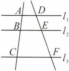 6. (2024·龙岗区期中)如图,已知$l_{1}// l_{2}// l_{3}$。若$AB=1$,$BC=2$,$DE=1.5$,则$EF$的长为(