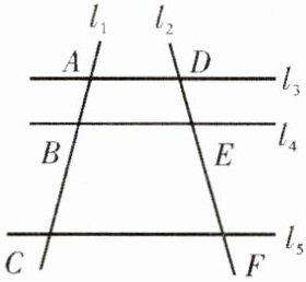 5. 如图,若$l_{1}// l_{2}// l_{3}$,则下列各式不一定成立的是(