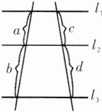 3. 例 如图,$l_{1}// l_{2}// l_{3}$,其中$a=2$,$b=3$,$c=4$,则$d=$