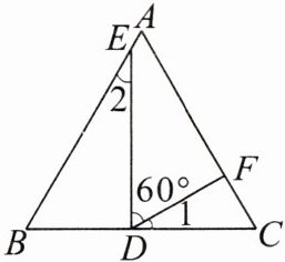 5. 如图,在等边三角形ABC中,D为BC上一点,∠EDF=60°,证明图中一对相似三角形.