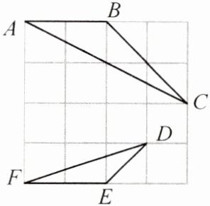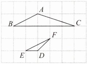 ∵$ AB = \sqrt{1^2 + 2^2} = \sqrt{5},$BC = 5,$AC = \sqrt{1^2 + 3^2} = \sqrt{10},$DE = 1,$EF = \sqrt{1^2 + 2^2} = \sqrt{5},$$DF = \sqrt{2},$
