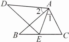 5. (2024·龙岗区期中) 如图,已知 $\angle 1 = \angle 2$,那么添加下列的一个条件后,仍无法判定 $\triangle ABC \backsim \triangle ADE$ 的是 (