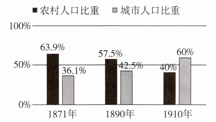 D 【解题思路】根据数据图可知,1871—1910年德国农村人口比重不断下降,城市人口比重不断上升,城市化进程加快。故选D。
