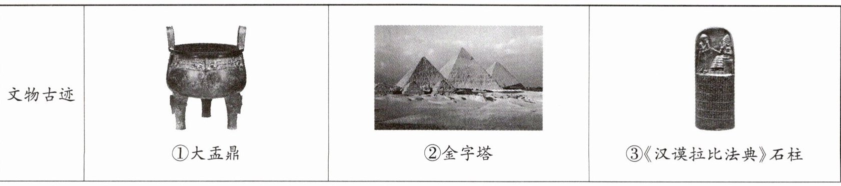 (1)②金字塔推介词:金字塔是古代埃及法老的陵墓,是古埃及文明的象征,反映了古埃及社会经济发展的较高水平,是古埃及人智慧的结晶。(2分)③《汉谟拉比法典》石柱推介词:《汉谟拉比法典》是迄今已知世界上第一部较为完整的成文法典,是古巴比伦王国留给人类的宝贵文化遗产,表明人类社会的法制传统源远流长。(2分)