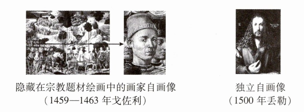 。(2 分)原因:文艺复兴时期,人文主义思想广泛传播,画家的自我意识提升,自画像逐渐从宗教题材中独立出来