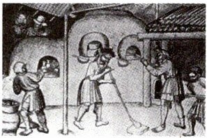2. 下图所示为《中世纪晚期玻璃加工图》(局部),从图中可以看出,生产玻璃的不同工序集合在同一个场所。该图可用于佐证 (