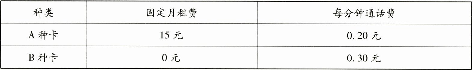 (2)算一算,当每月累积通话时间为多少时,这两种卡收费一样?