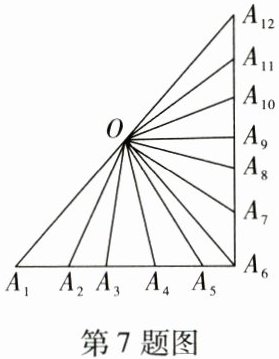 37 [解析]根据题意,按斜边的中点和它顶角的连线为界,把三角形分成两部分,分别数出两个三角形中的小三角形的个数,A₁A₆边上共有6个点,每两点都可以和O形成一个三角形,一共可以组成5+4+3+2+1=15(个)三角形。A₆A₁₂边上有7个点,每两个点都可以和O形成一个三角形,一共可以组成6+5+4+3+2+1=21(个)三角形,A₁、A₆、A₁₂这三点构成1个最大的三角形,然后相加,即一共有15+21+1=37(个)三角形。
