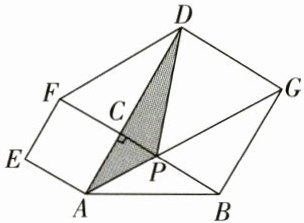 156 [解析]四边形BCDG是正方形,$S_{\triangle ABC}=\frac{1}{2}S_{正方形BCDG}$,$S_{\triangle DPC}=\frac{1}{2}S_{正方形BCDG}$,因此$S_{\triangle ABC}+S_{\triangle DGP}=S_{正方形BCDG}=S_{\triangle DCF}+S_{\triangle DGP}+S_{\triangle GPB}$,从而得到$S_{\triangle APB}=S_{\triangle DPC}$,△ADP的面积就等于△ABC的面积。$S_{\triangle ADP}=S_{\triangle ABC}=12×26÷2 = 156$。