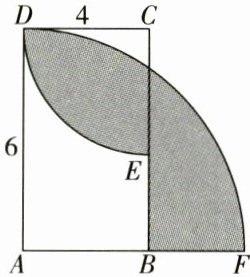 $13\pi - 24$ [解析]$S_{阴}=S_{扇形ADF}+S_{扇形CDE}-S_{长方形ABCD}=\frac{1}{4}×\pi×6^{2}+\frac{1}{4}×\pi×4^{2}-6×4=9\pi + 4\pi - 24=13\pi - 24$