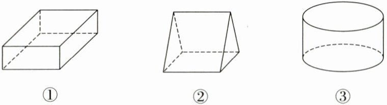 6. (立体图形的分类与识别)如图所示的三个几何体,其中棱柱是
