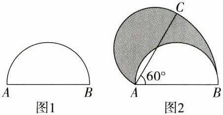 31.(组合图形求面积)如图1是一个半径为3厘米的半圆,AB是直径。保持点A不动,将整个半圆逆时针旋转60°,此时点B移动到点C,如图2。则图中阴影部分的面积是多少平方厘米?(π取3.14)