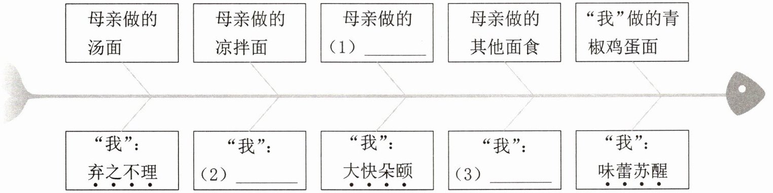1. 新考法 照样子,梳理文章中有关做面食的情节和“我”对面食情感态度的变化。