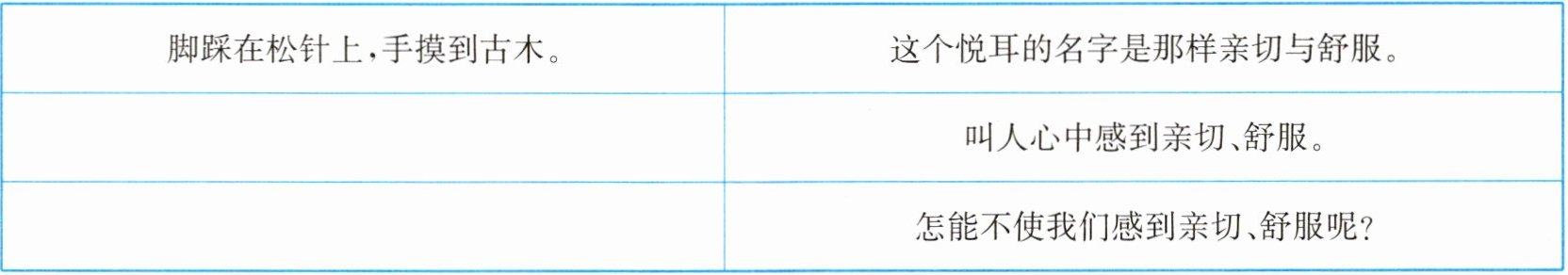 1.(1)群岭 树林 野花 (2)多 温柔 (3)种类多 (4)野花 2.(1)AD (2)AB 3. 兴安岭的美丽与建设结为一体。 人与山的关系日益密切。 4. 本句把“青松”比作“衫”,把“白桦”比作“裙”,把“野花”比作“绣花鞋”,把兴安岭的美丽写得生动可感,从而突出了作者对兴安岭的喜爱和赞美之情。 5. 因为兴安岭不但美丽,而且为祖国提供资源,让祖国兴盛安定,所以作者认为兴安岭的确含有兴国安邦的意义。