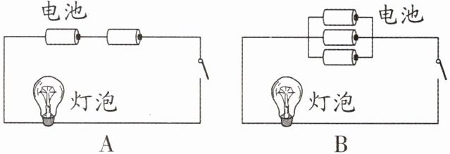 48. (2024·苏州太仓)科学课上,同学们做电池实验,组装了A、B两种电路模型(如图),一共使用了18个灯泡和47节电池。A、B两种电路模型各组装了多少套?