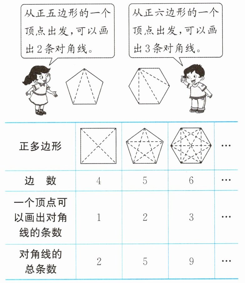 聪聪是个喜欢思考的学生,他发现正多边形的对角线的总条数和正多边形的边数存在某种规律(如上表)。照这样的规律,正七边形共有(