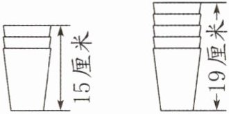 (1) (2023·扬州广陵区)如图,3个同样大小的杯子叠起来高15厘米,5个这样的杯子叠起来高19厘米。n个这样的杯子叠起来高(