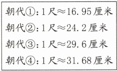 )的标准最可能是三国时期“1 尺”的标准。(填序号)朝代①:1 尺≈16.95 厘米