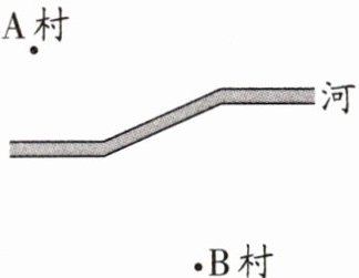 4. (2023·蚌埠禹会区)如图,从A、B两村各挖一条水渠与河接通,要使水渠最短,请你想一想应该怎么挖。(用一条线段表示水渠)