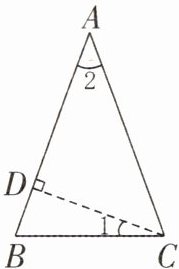 5. (2024·无锡江阴)如图,在等腰三角形ABC中,AB= AC,线段CD是边AB上的高。已知∠1= 20°,则∠2= (