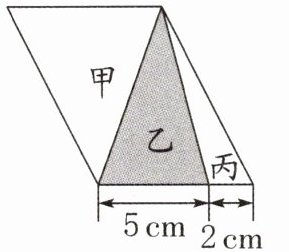 10. (2024·南京栖霞区)把一个平行四边形分成甲、乙、丙三个小三角形(如左下图),如果甲的面积是$28cm^{2}$,那么乙的面积是(