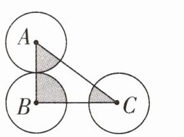 14. (2024·镇江丹阳)左下图中,直角三角形ABC的三条边长分别为6cm、8cm、10cm,三个顶点A、B、C分别是三个半径相等的圆的圆心,则涂色部分的面积是(