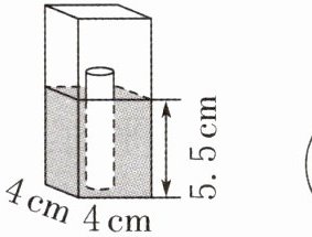 20. (2024·南京江宁区)如左下图,一个从里面量底面长和宽都是4cm的长方体容器里装了3cm深的水,当放入一个圆柱形铁块时,水深变为5.5cm,这时铁块的$\frac{1}{5}$刚好露出水面。这个圆柱形铁块的体积是(