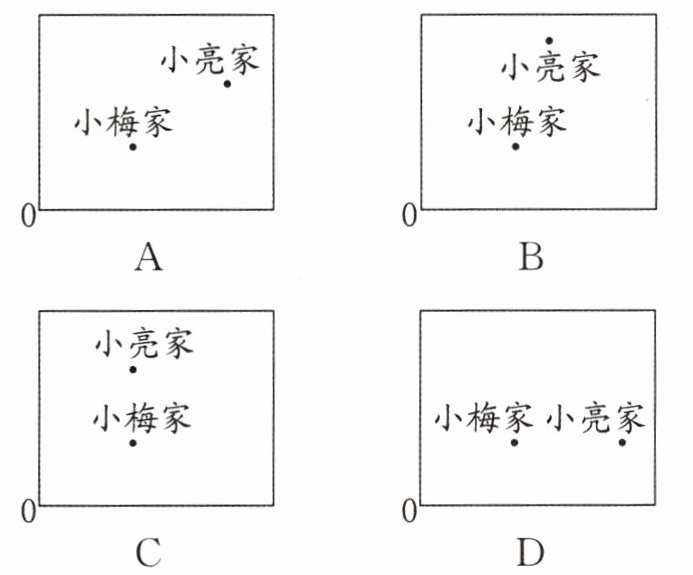 (2) (2024·扬州高邮)小梅、小亮想用图来表示他们两家的位置。如果小梅家的位置用点$(3,2)$表示,那么小亮家的位置就应该用点$(6,4)$表示。在下面四幅图中,能正确表示出小梅家和小亮家位置的是(