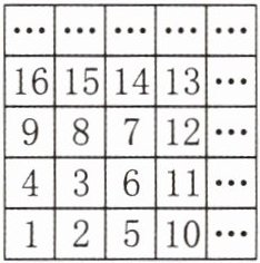 (1) (2024·南通如东)图中的自然数是按一定规律排列的。6的位置用数对$(3,2)$表示,15的位置用数对$(2,4)$表示,70的位置用数对(