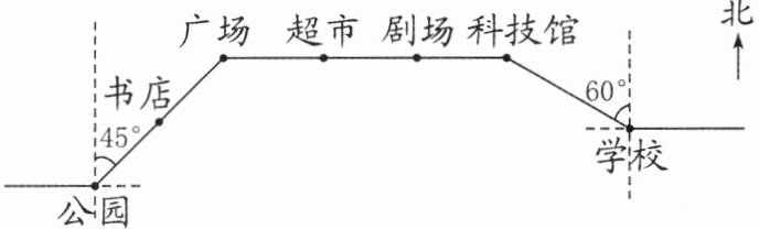 8. (2024·淮安淮阴区)某路公交车的始发站是公园,终点站是学校。淘淘从超市上车,先向东乘坐2站到科技馆,再向