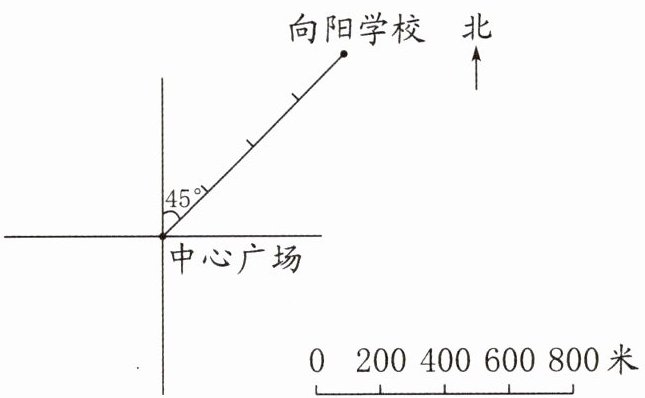 )米处。(2) 书店在中心广场的南偏西$60^{\circ}$方向400米处,在图中标出书店的位置。