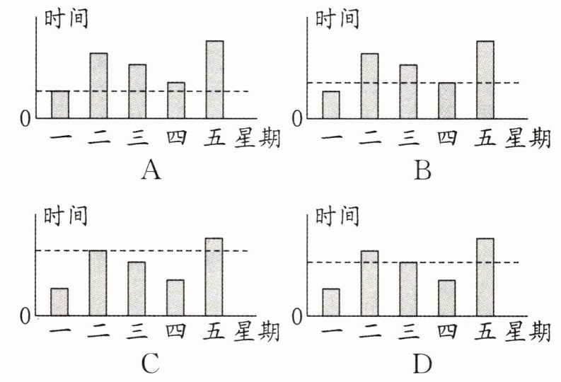 )幅图中的虚线大致能表示小军这五天运动的平均时间。