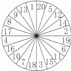 (3) (2024·泰州兴化)飞镖靶中有20个大小相等的区域,上面分别写着自然数1~20(如图)。打在靶上的任意一镖,落在(