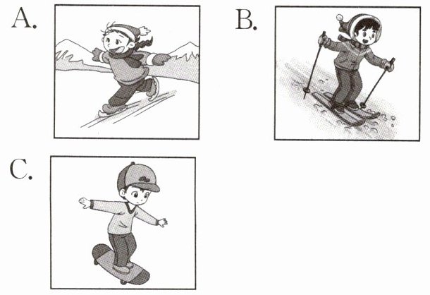 ( )1. Which of the following(下列) sports is skateboarding?
