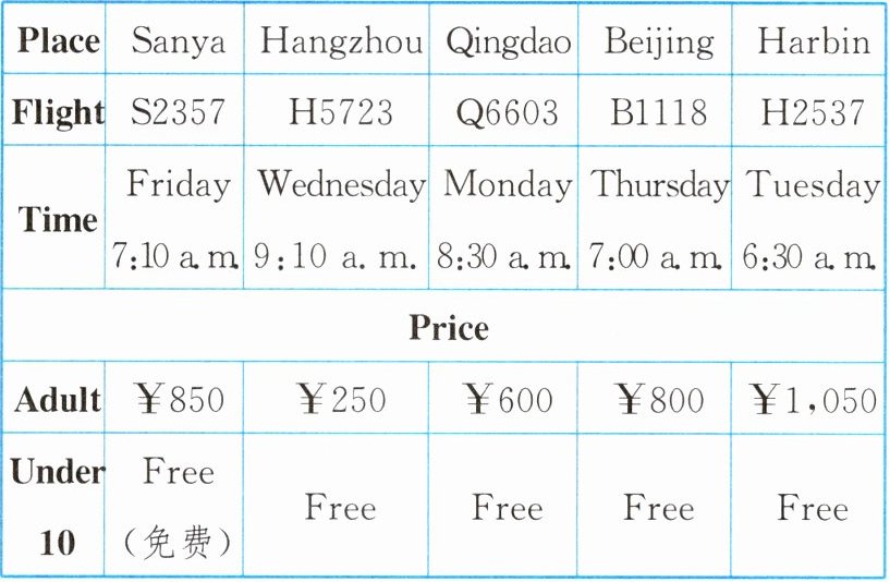 )2. If you want to go to Beijing, you can take Flight ______.A. Q6603 B. B8111