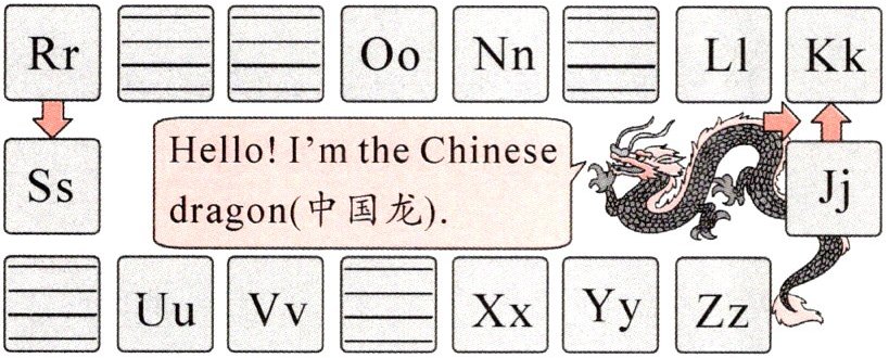 一、新考法 补全龙图 Read and write. 按照字母表顺序写出字母的左邻右舍,帮助中国龙腾飞,注意大小写。