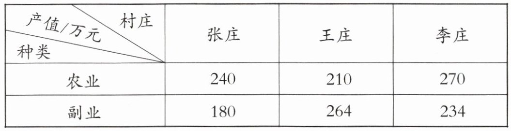 三、某镇三个村庄的农副产值如下表,请完成各题。