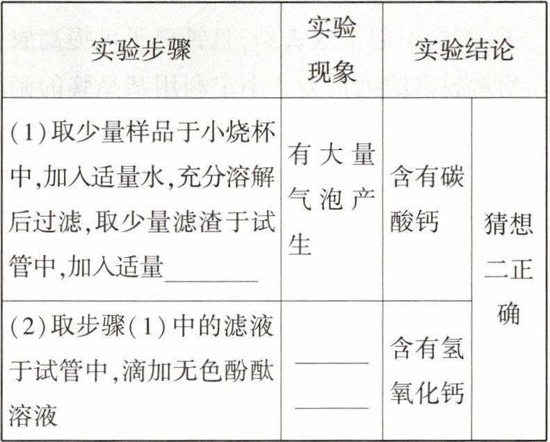 猜想二:该瓶粉末的成分可能为氢氧化钙和碳酸钙。