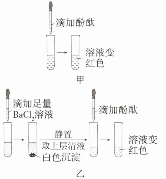 (4)某同学认为图乙中用$Ba(OH)_2$溶液代替$BaCl_2$溶液也可以得到同样的结论,你认为该同学的说法是否正确?____(填“正确”或“不正确”)。
