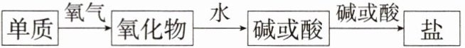 C 铜和氧气在加热的条件下生成氧化铜,氧化铜不能和水反应,A错误;镁和氧气在点燃的条件下生成氧化镁,氧化镁不能和水反应,B错误;碳和氧气在点燃的条件下生成二氧化碳,二氧化碳和水反应生成碳酸,碳酸和氢氧化钠反应生成碳酸钠和水,C正确;铁和氧气在点燃的条件下生成四氧化三铁,四氧化三铁不能和水反应,D错误。